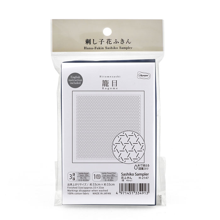 オリムパス 刺し子 花ふきん 布パック 籠目 Kagome 藍(糸別売り)