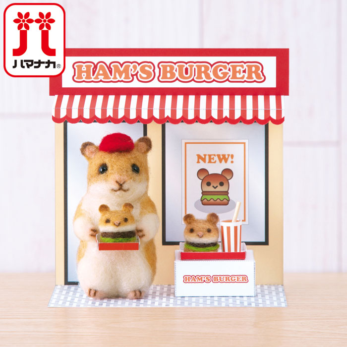ハマナカ キット アクレーヌとペーパークラフトでつくる かわいいどうぶつのお店屋さん ハムスターのハンバーガーショップ