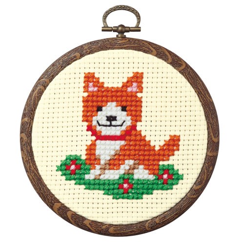 オリムパス かんたんクロス・ステッチ刺しゅうキット イヌとお花(フープ付) 【刺繍キット】