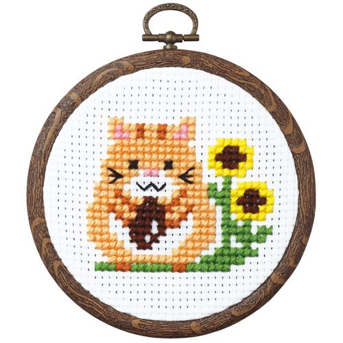 オリムパス かんたんクロス・ステッチ刺しゅうキット ハムスターとひまわり(フープ付) 【刺繍キット】