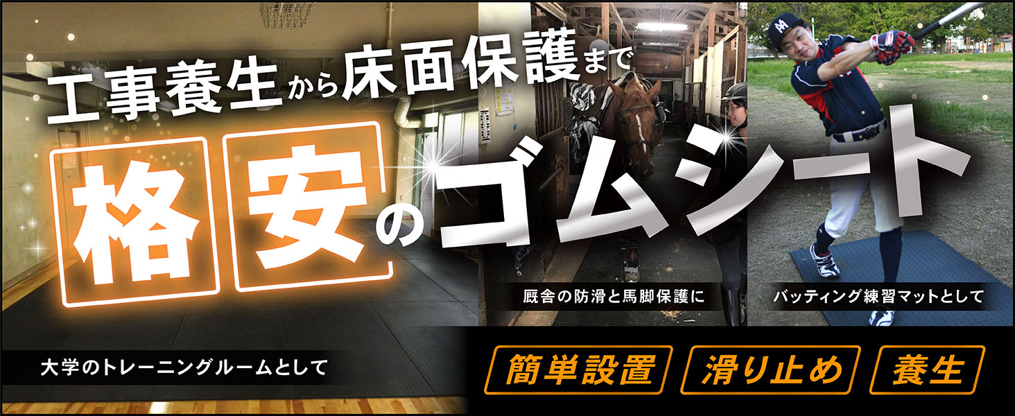 スポーツの反復練習では、同じエリアで何度も同じ練習をするため床や地面が一部分だけエグれたりしますがゴムシートを敷くと耐久性が上がりメンテナンスが楽になります。