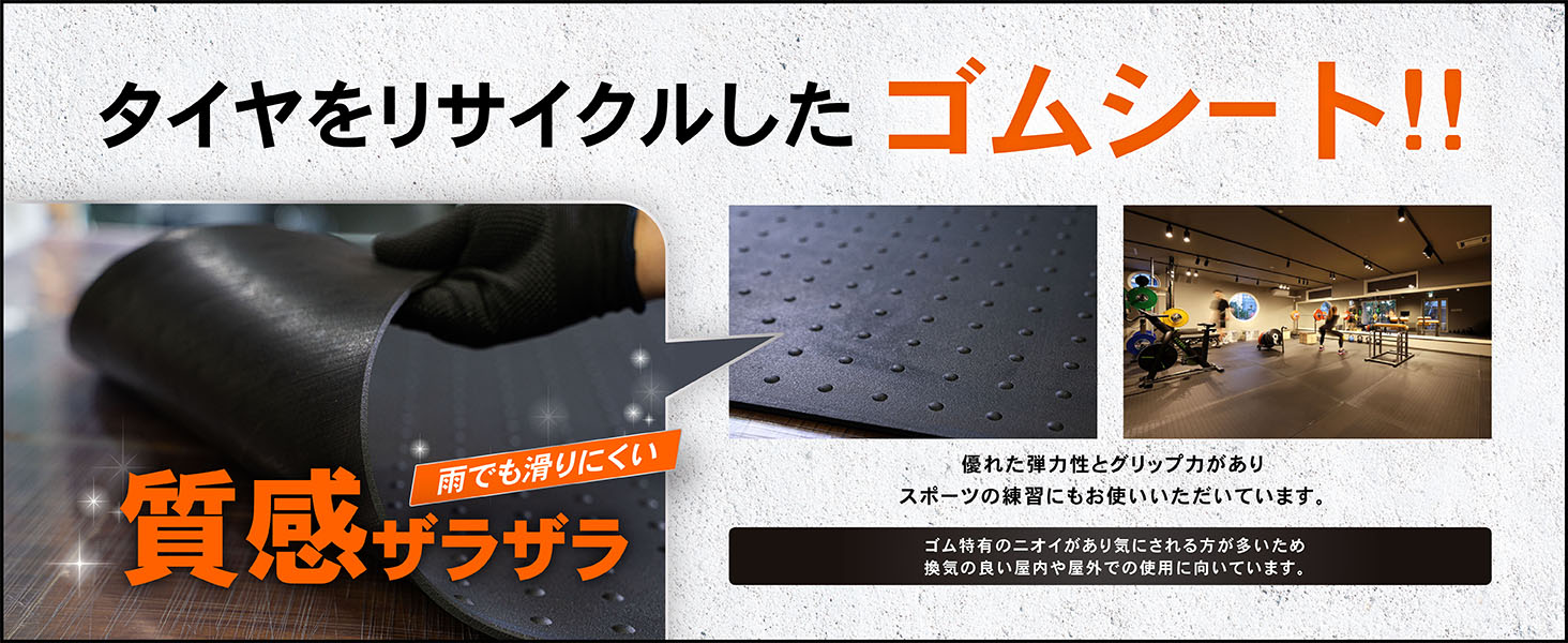 ●リサイクルゴムシートとは?環境に優しいタイヤの廃材を原料にしたゴムマットです。