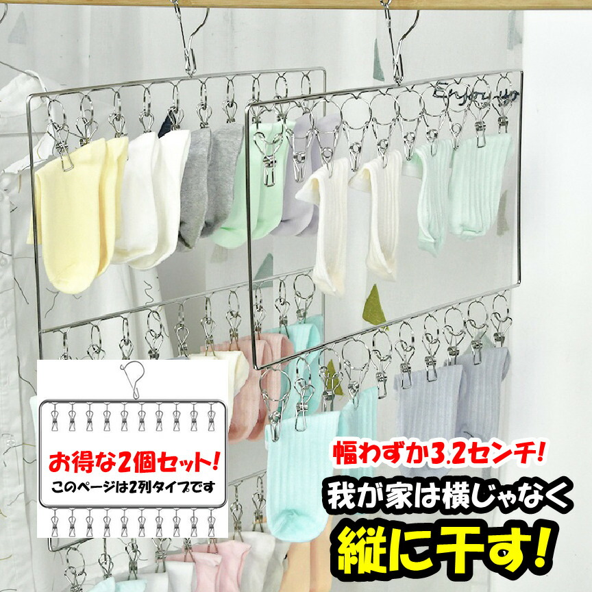 ピンチハンガー ステンレス 20ピンチ 2個セット! 室内干し 縦型2列 室内物干し ピンチ 靴下干し 下着干し タオル干し 物干し 洗濯用品 洗濯ハンガー 洗濯物干し 物干しハンガー 洗濯ばさみ 洗濯物 縦型 2列 母の日 プレゼント