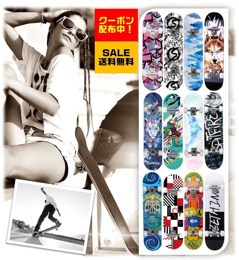 | 商品情報 | スケートボード 板面:高密度滑り止め防水金剛砂 ホイール:PUホイール べアリング:ABEC-7クロム鋼べアリング サイズ:80×20×10(cm) トラック:鉛合金トラック 95A下PU防振パッド 適応身長:120cm以上 最大耐荷重:150kg ※海外直輸入品の為、パッケージの破れ、小傷等がある場合あります。天然木の上にデザインをペイントしておりますので、色のズレ、多少の剥がれ箇所がある場合があります。予めご了承ください。 |