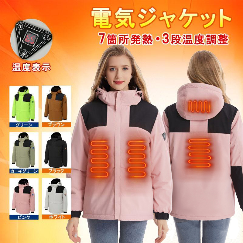 電熱ジャケット 電熱ウェア 長袖 登山服 USB加熱 3段温度調整 電熱服 発熱ジャケット 電熱アウター 水洗い 防水防風 速暖 極暖 軽量 釣り スキー 暖房 男女兼用