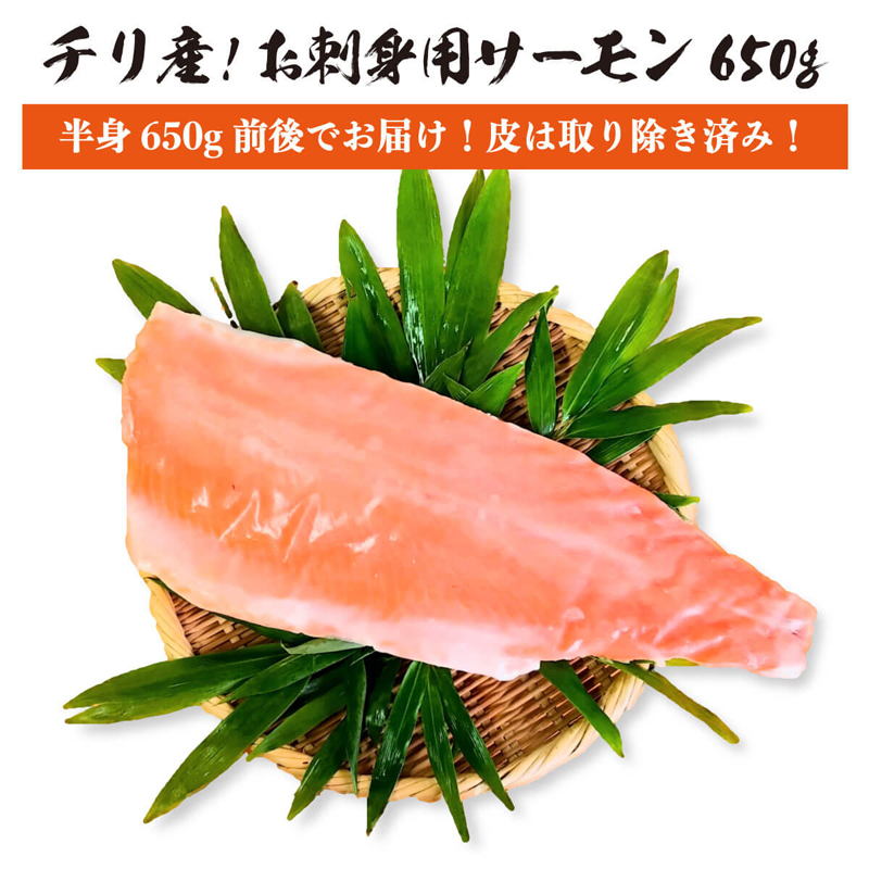 お刺身用 サーモン 半身 650g前後 【皮除去済みで使いやすい】 チリ産 刺身 寿司 手巻き寿司 などご飯のお供に 刺身用サーモン 鮭 刺身 さけ