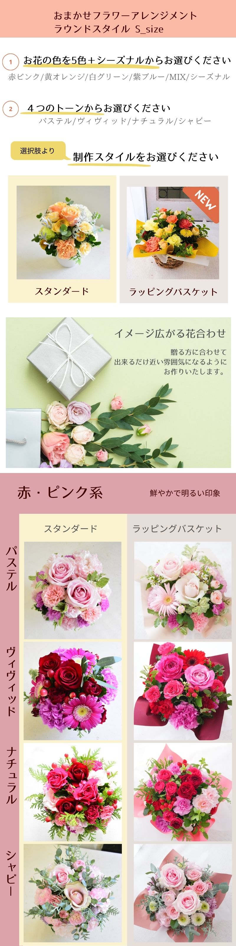■こちらの商品【おまかせアレンジメント ラウンドスタイル R(regular)_size】は生花の商品ですので、翌日配達ができない地域(北海道・青森県・秋田県・沖縄県・その他離島)へのご注文は受付しておりません。