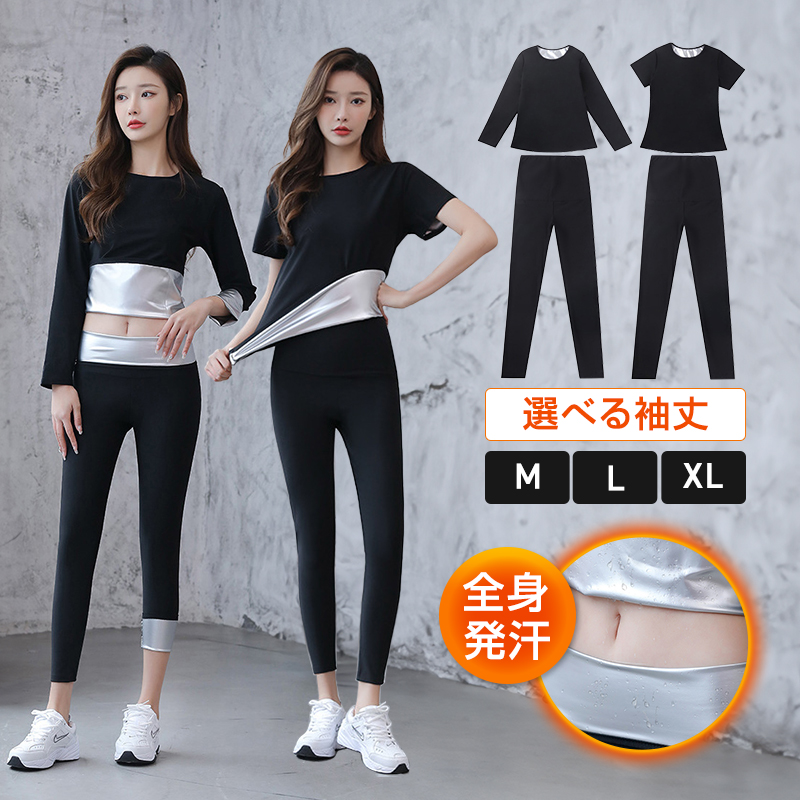 サウナスーツ レディース ウェア メンズ 上下 セット トレーニング 運動 パンツ おしゃれ インナー 上着 半袖 洗濯可能 発汗 シンプル
