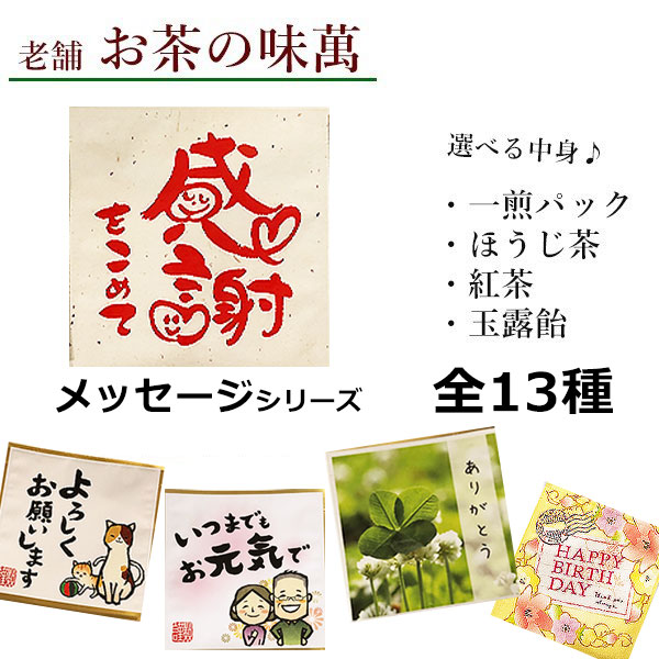 【日本茶葉専門店】プチギフト お茶の味萬 選べる中身 あめ 玉露 煎茶 紅茶 飴 お返し メッセージ 感謝 祝い 退職 挨拶 人気 ギフト プレゼント