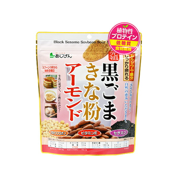 あじげんの元祖である「黒ごまきな粉」は、カルシウムと鉄を含む栄養機能食品に加え、黒すりごまと大豆(きな粉)を黄金比でブレンドしています。