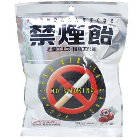 「禁煙飴 コーヒー味 70g」は、タバコがだんだん不味くなる松葉エキス・松脂末を配合し、本格コーヒーパウダーでブラックコーヒーの風味がお口イッパイに広がるコーヒー味の禁煙飴です