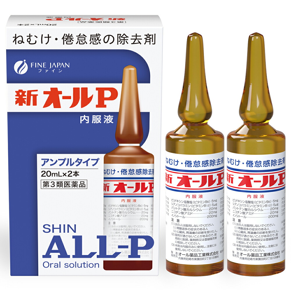 新オールP内服液は無水カフェインを主薬とし、それにビタミン類その他の成分を配合したアンプル内服液です。