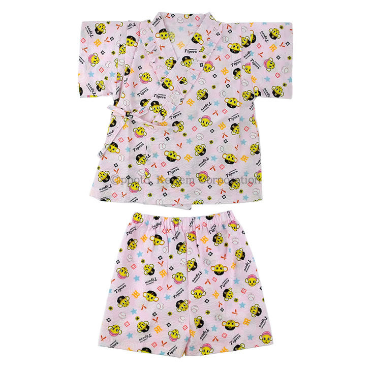 阪神タイガースのマスコットキャラクター「トラッキー」「ラッキー」「キー太」がプリントされたベビー甚平です。