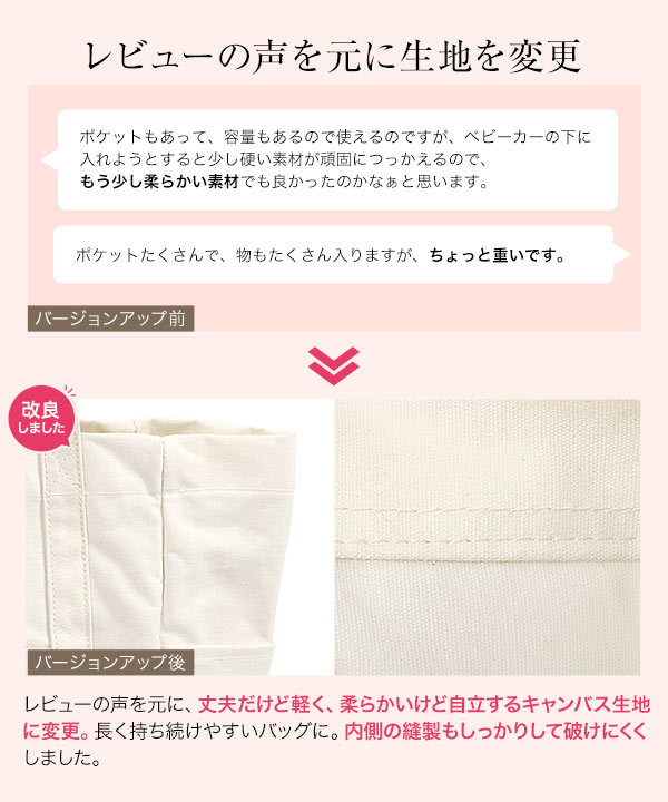 ナチュラルな雰囲気でデイリー使いも可能なマザーズバッグ。