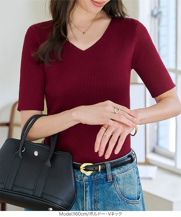 程よく厚みのあるしなやかな細リブで華奢な女っぽさを演出。