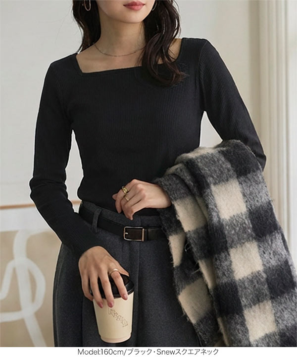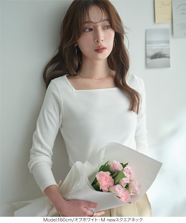 スクエアネック、Vネック、ボートネックから選べるタイプで、