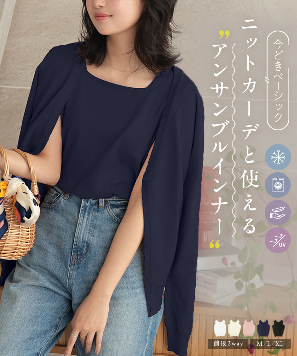トップス レディース 40代 ノースリーブ UVカット 接触冷感 スクエアネック 【※アンサンブルのカーデはC6886】C7122