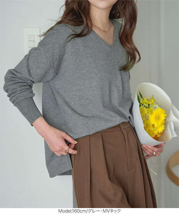 [ M/L/XL 選べるネック ] メルティベーシックニットトップス