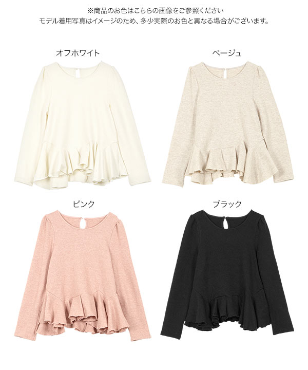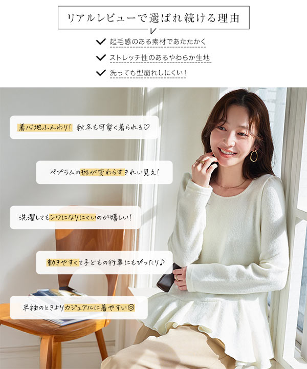 ペプラムトップス 長袖 トップス レディース 40代 上品 オフィス ブラウス ニットソー 50代 白 黒 C7712