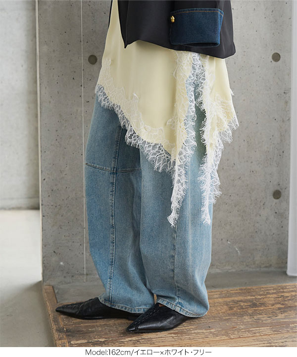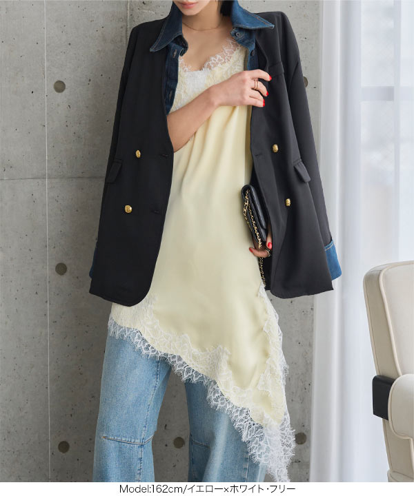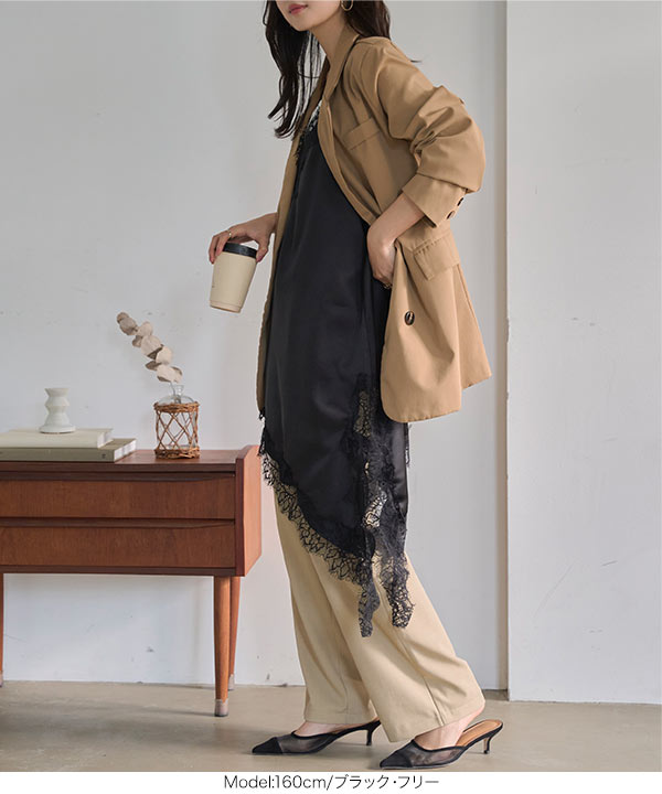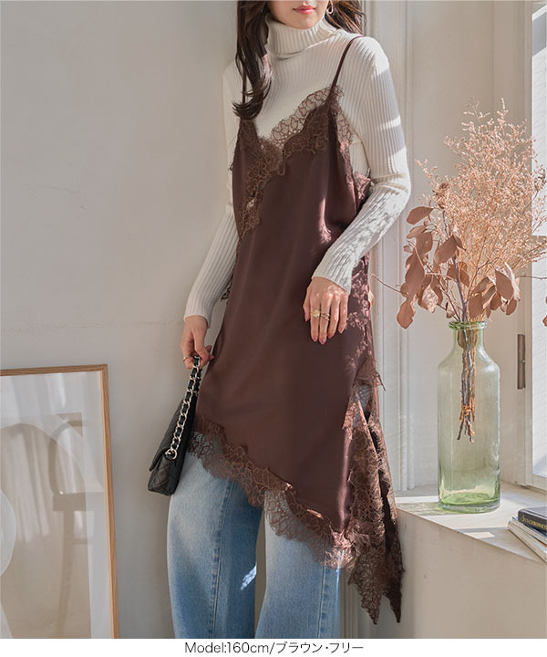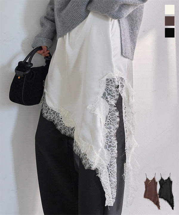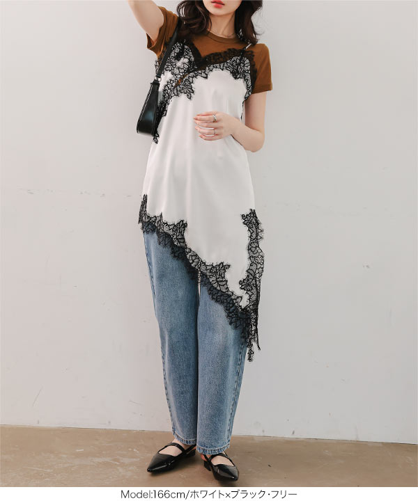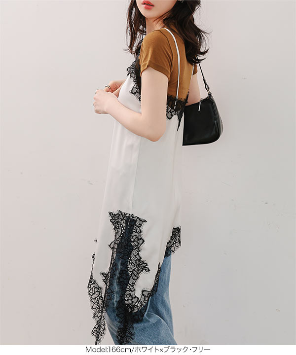 キャミソール 重ね着 ロングキャミソール レースキャミソール サテンキャミソール レイヤード キャミ C7769送料無料