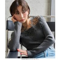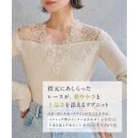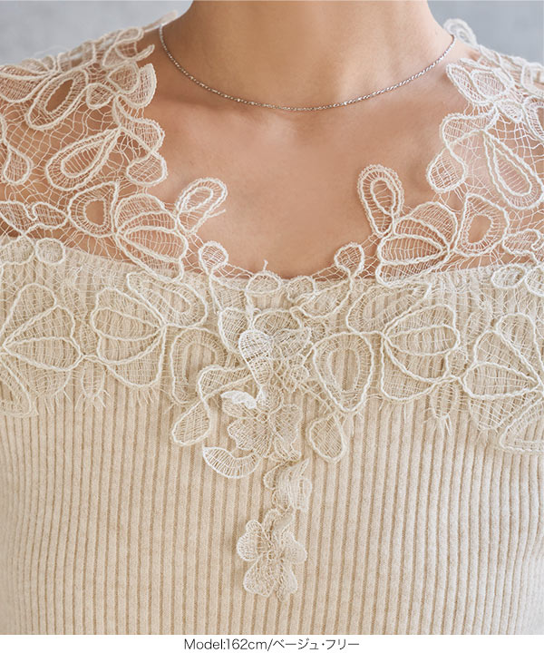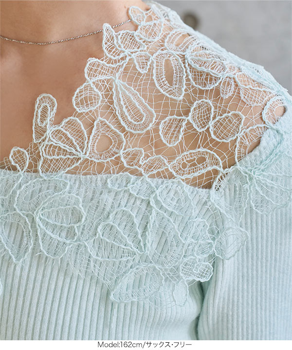 ニット レース トップス レディース リブニット 華やか もっちり オフショル 30代 40代 50代 胸元レース 着映え C7818