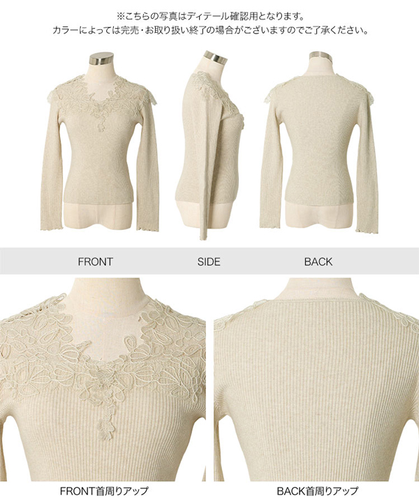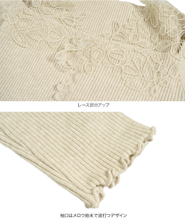 レースオフショルリブニット