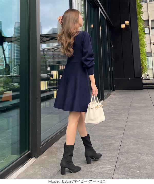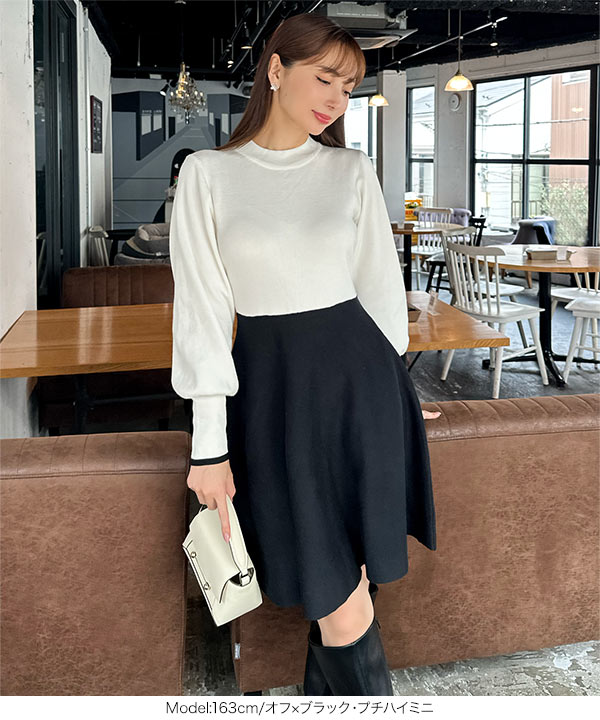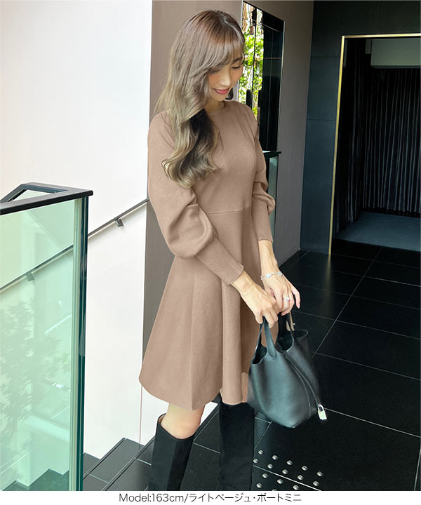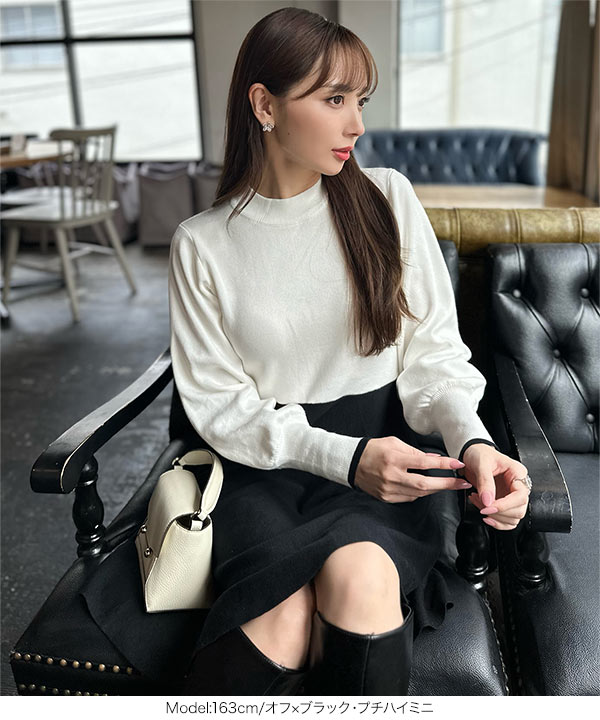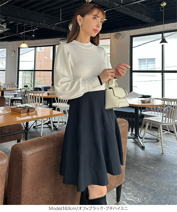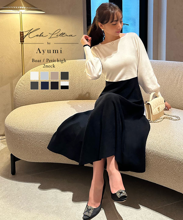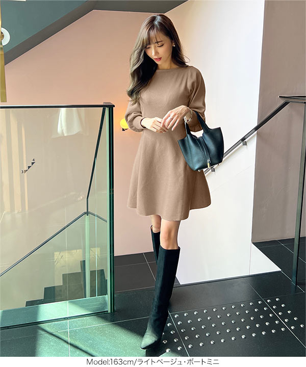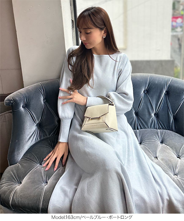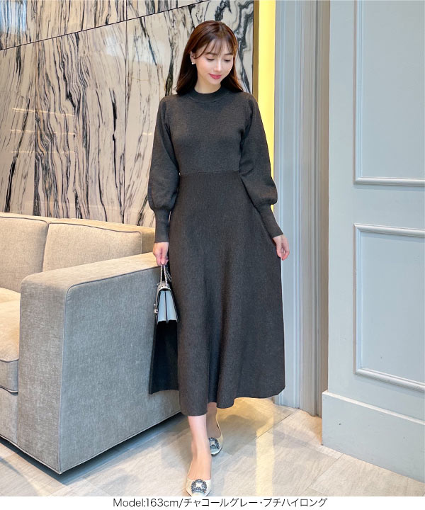 商品カテゴリ:Ayumi おかべ デート ニット ニットワンピ プチハイネック フレア ボートネック ボリュームスリーブ ぽわん袖 ミニ ミニワンピ レディース ロング ロングワンピ ワンピース 上品