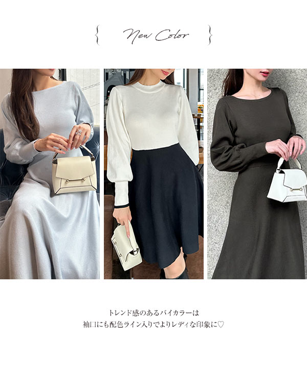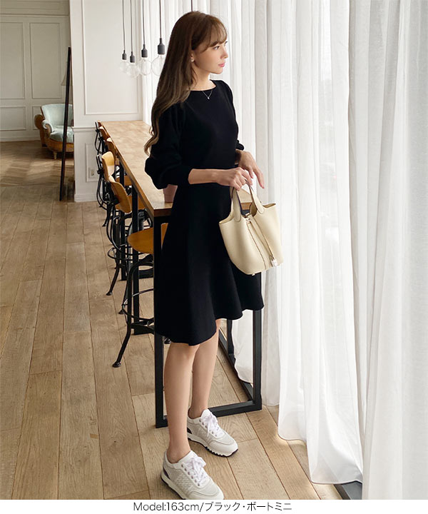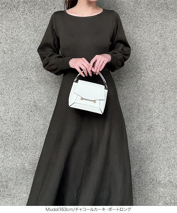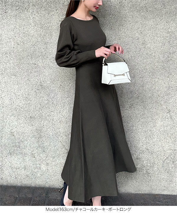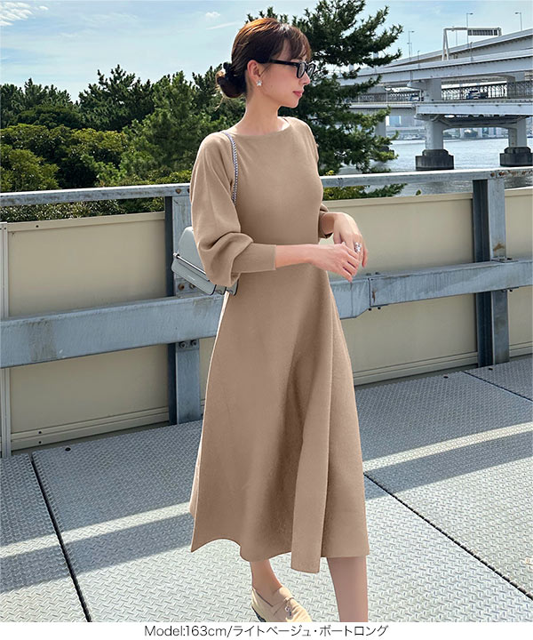 岡部あゆみさんコラボ ニットワンピース レディース フレア ロング ミニ ぽわん袖 E2920