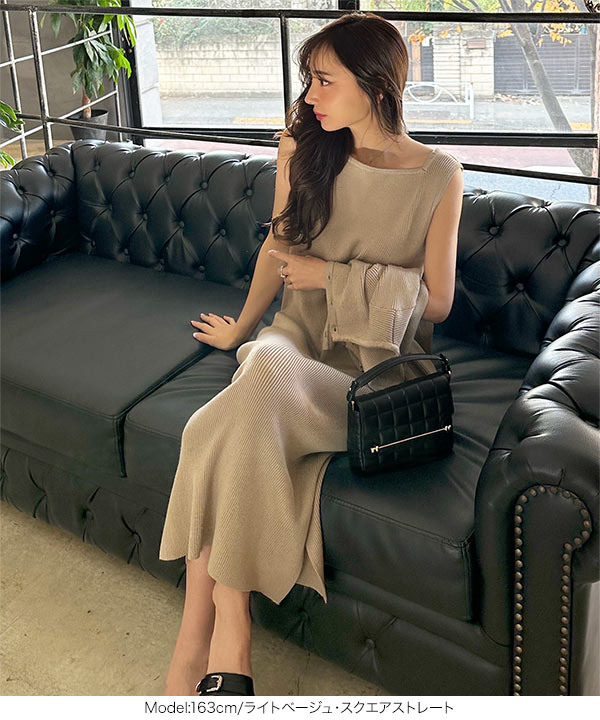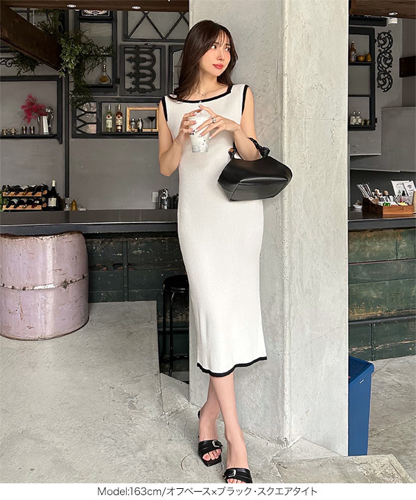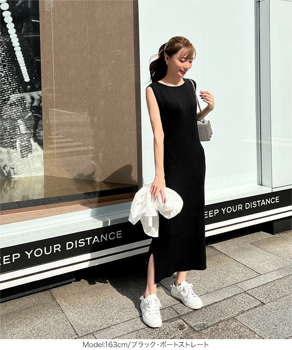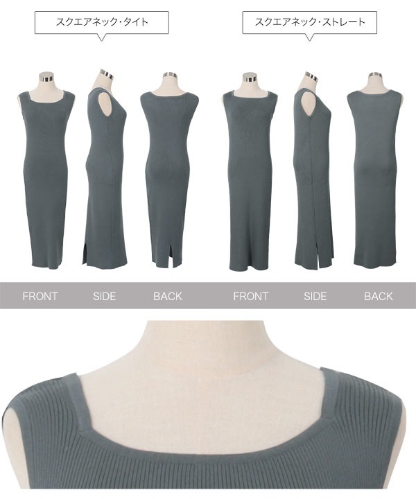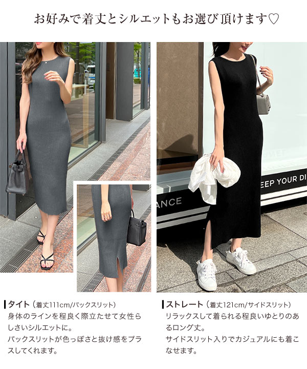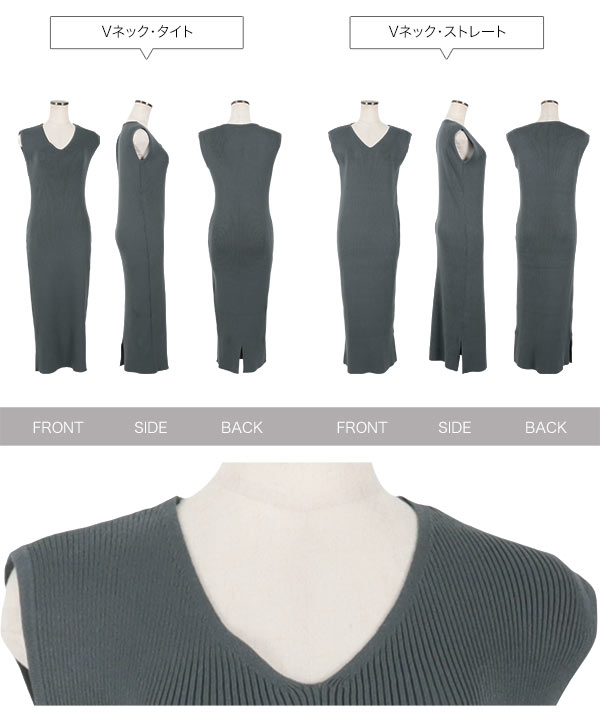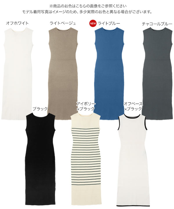 [ 岡部あゆみさんコラボ ] 選べるネックとタイプ リブニットノースリーブワンピース