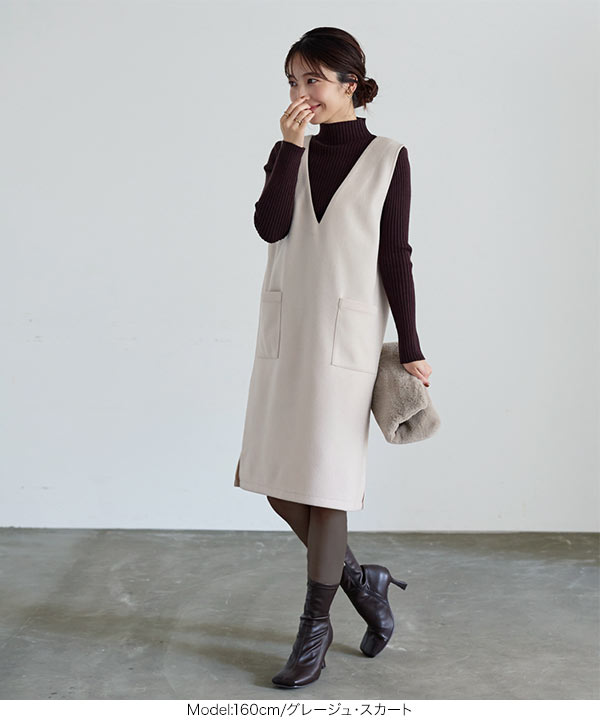 今シーズントレンドのミニサロペが秋冬仕様で新登場。