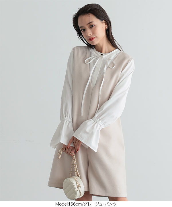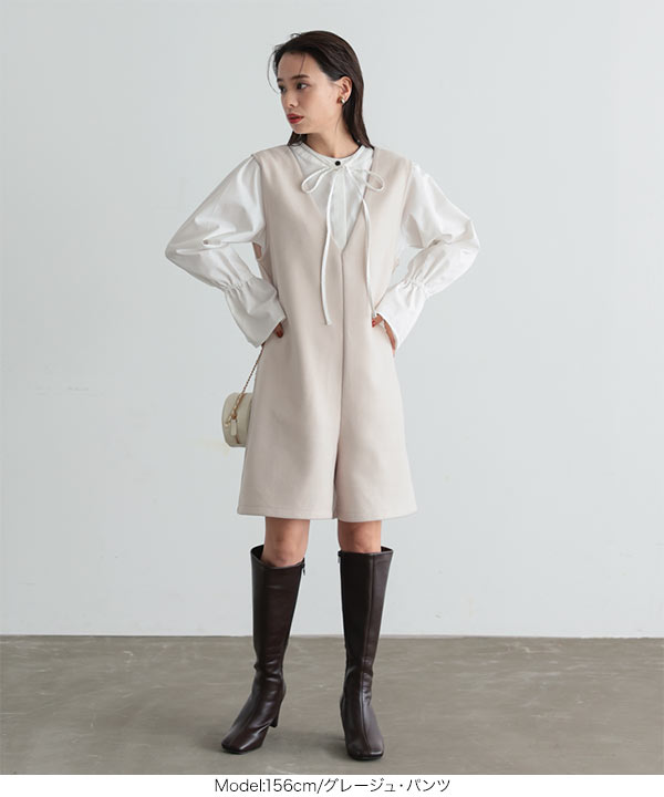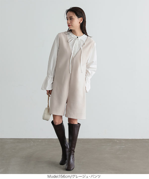サロペット ショートパンツ オールインワン ボトムス レディース フェイクウール ロンパース ワンピース E3187