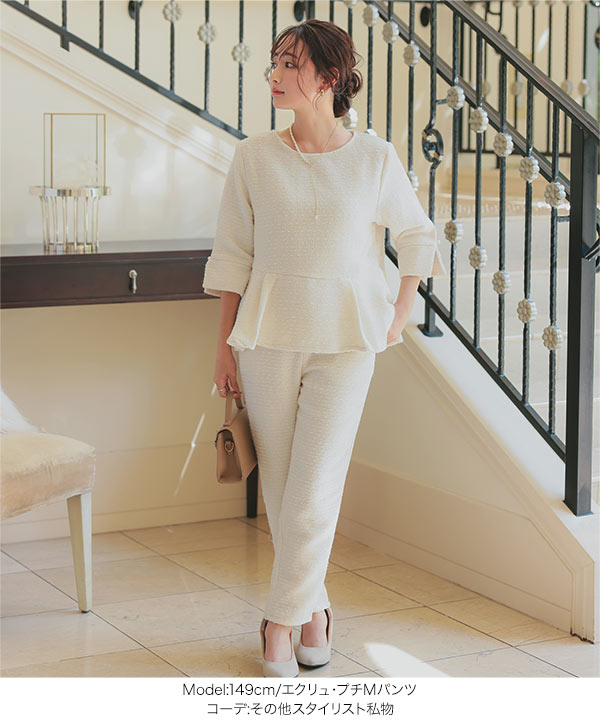 フォーマルセットアップ Petitle ペプラム 低身長 小柄 卒園式 入学式 入園式 ママ 卒業式 母 服装 E3220送料無料