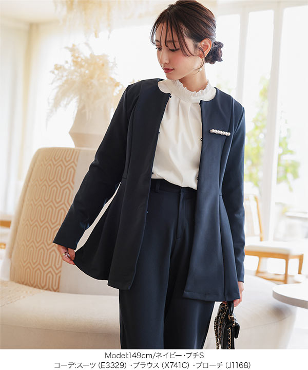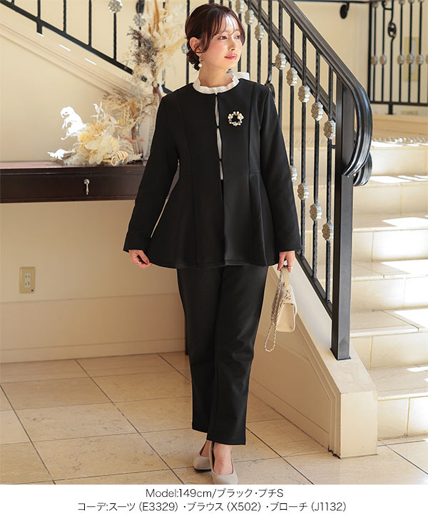 1000円OFFクーポンあり セットアップスーツ ペプラムジャケット 卒園式 入学式 ママ 低身長 Petitle 卒業式 母 服装 入学式 E3329送料無料