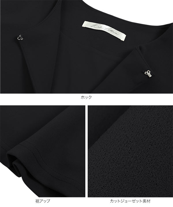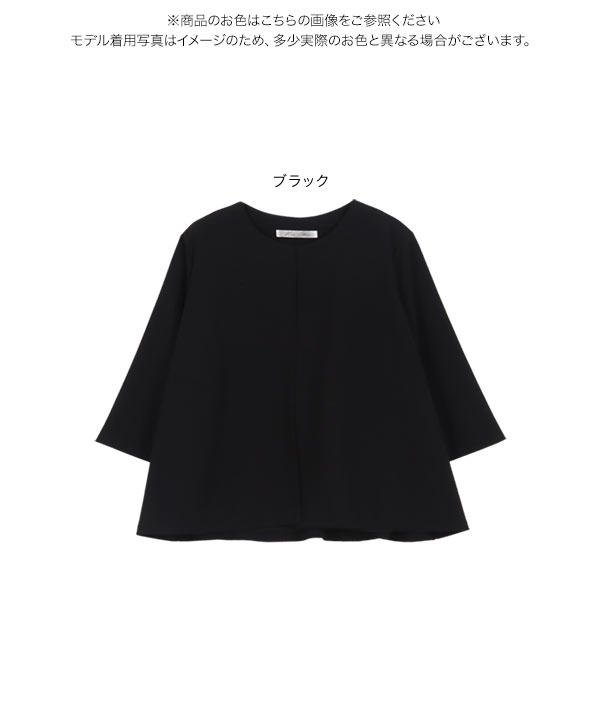 ノーカラーのデザインで首まわりをすっきり見せつつ、