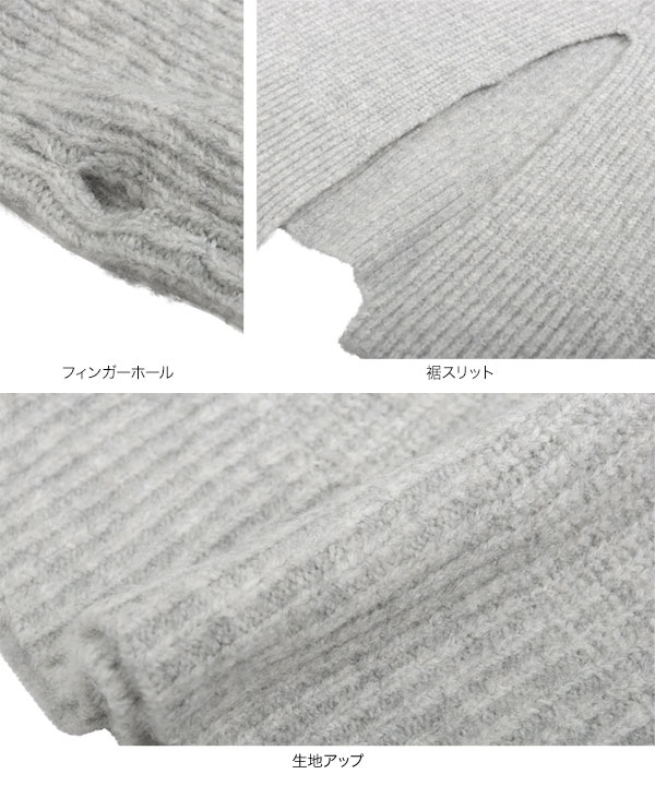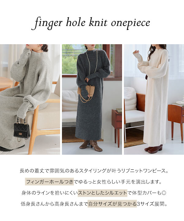 選べる3サイズ 指穴つきロングカフスリブニットワンピース