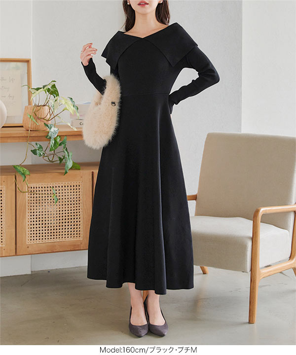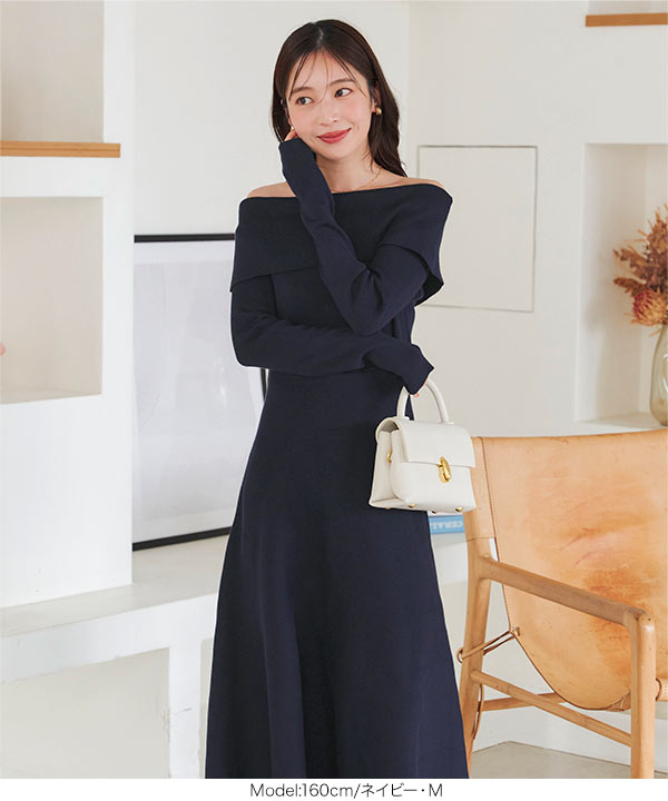 マルチway フィット&フレアオフショルニット長袖ワンピース