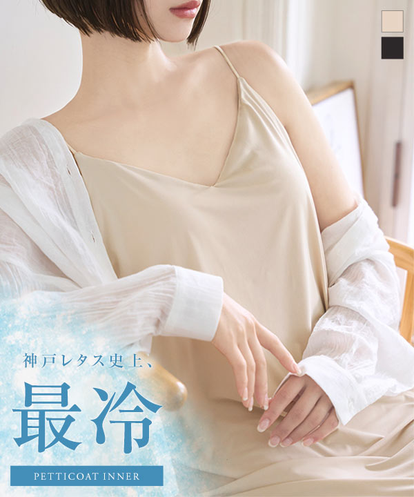 [ 超冷感 ] 紫外線99.9%カット接触冷感カップ付きペチコートインナー