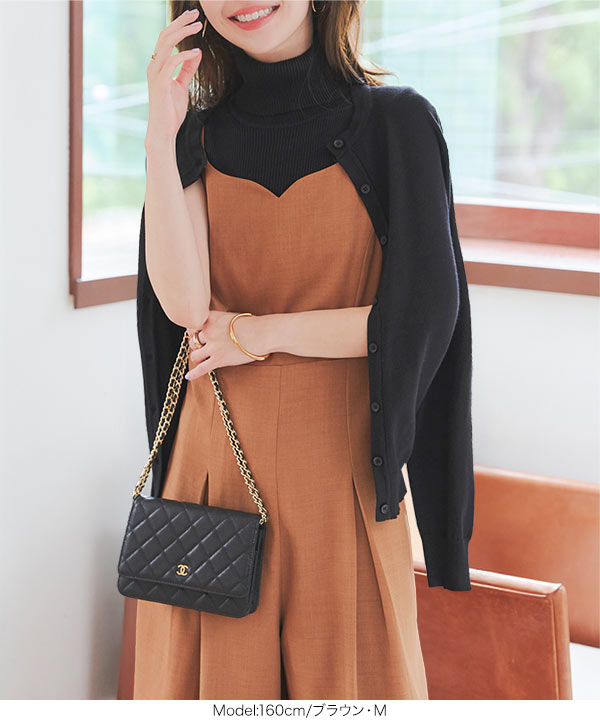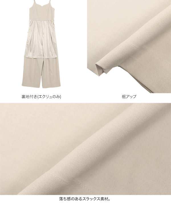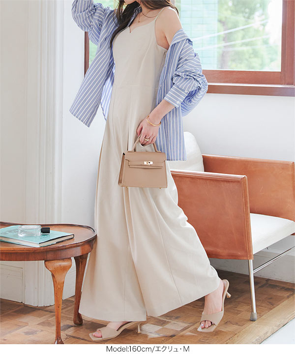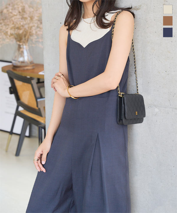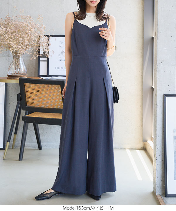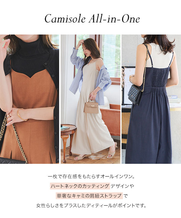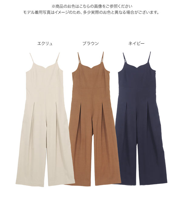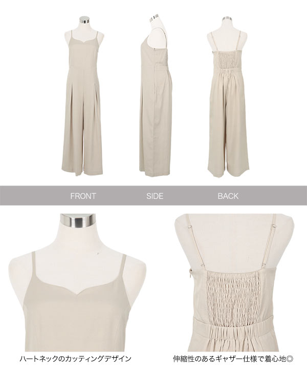 ワイドパンツ オールインワン きれいめ キャミソール ワンピース サロペット ハートネック キャミ 低身長 E3522