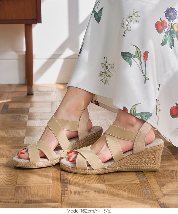 サンダル 20代 30代 40代 50代 レディース シューズ 夏 ウェッジソール ジュート クロスゴムベルト S LL 軽量 I1296