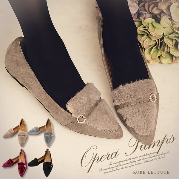 パンプス オペラパンプス フラットシューズ レディース 靴 シューズ ポインテッドトゥ パール ファー I1719
