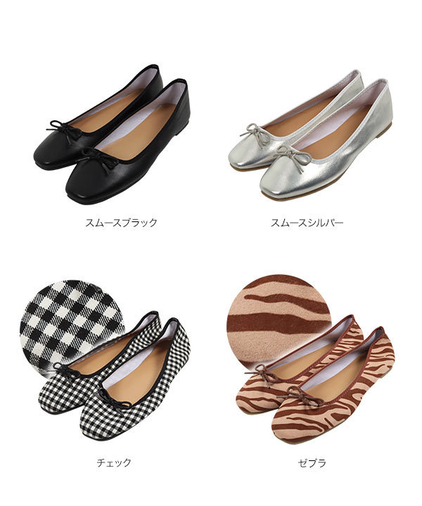 パンプス レディース シューズ バレエシューズ ぺたんこ フラット スクエアトゥ リボン 歩きやすい I2401