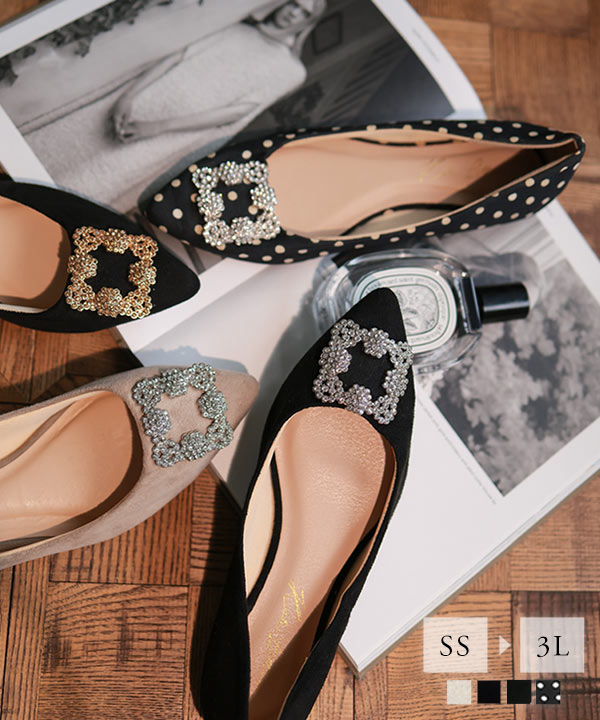 パンプス ぺたんこ レディース シューズ 秋 ビジュー フラット お呼ばれ ビジネス オケージョン 冠婚葬祭 お仕事 I2476