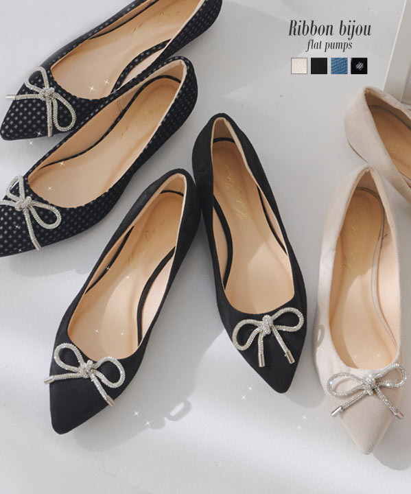 フラットパンプス リボン フラットシューズ レディース ポインテッドトゥ フラット シューズ 40代 靴 I2634