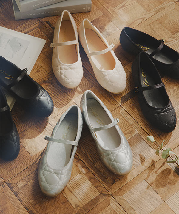 クラシカルな大人の上品さ引き立てるキルティングメリージェーン。