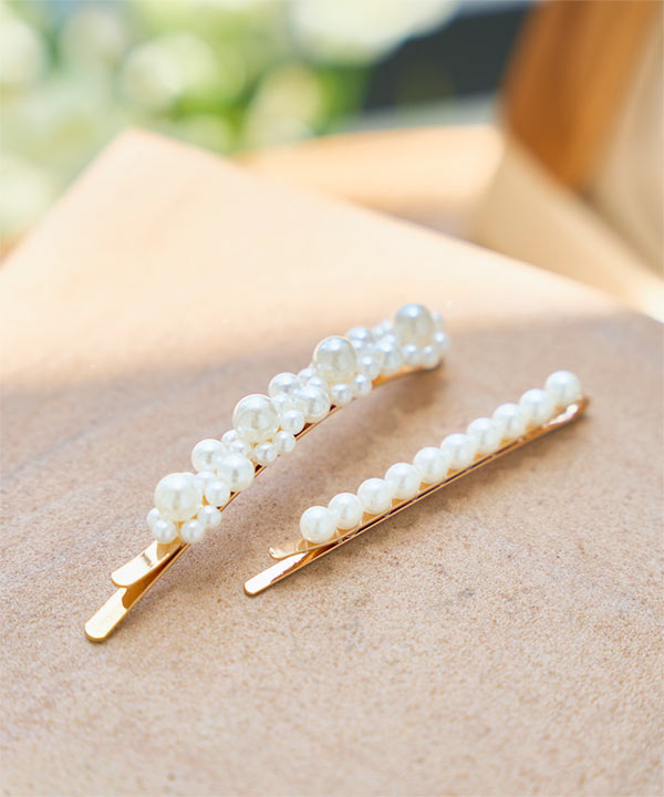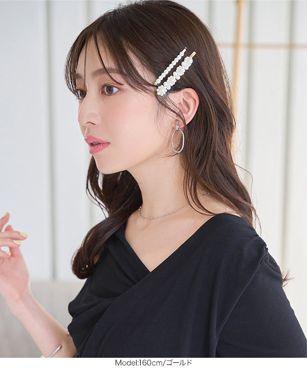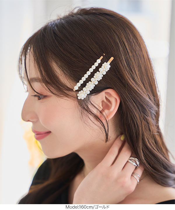 ゴールドヘアピンに上品にきらめく華やかパール。