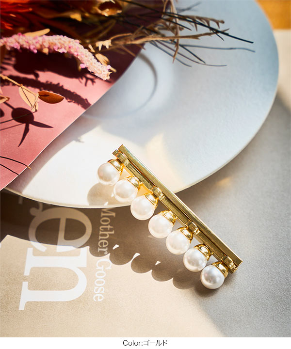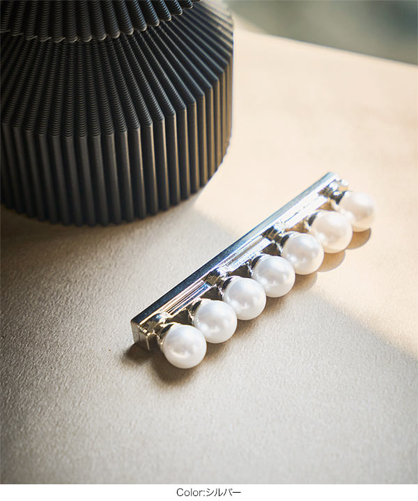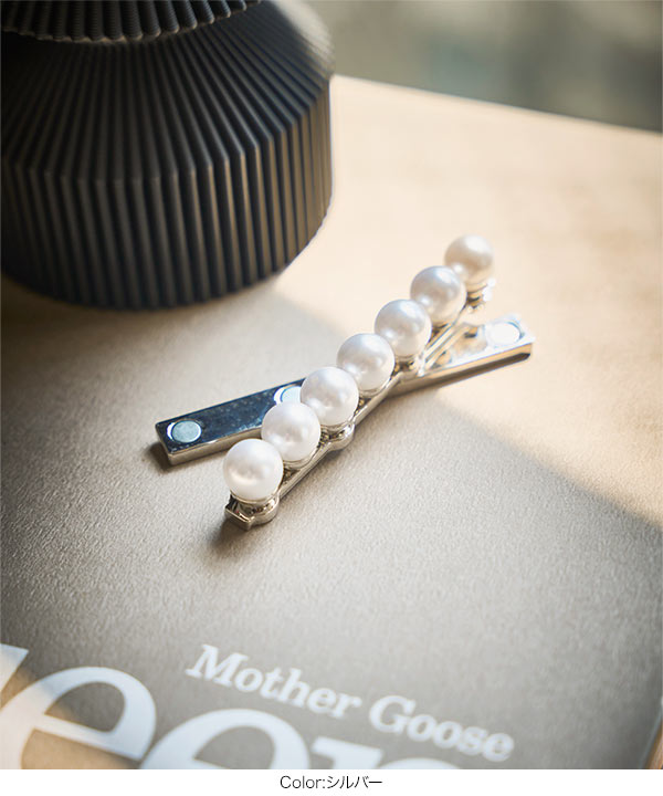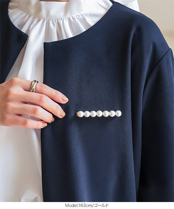 シンプルながらも華やかさを添えるパールマグネットブローチ。