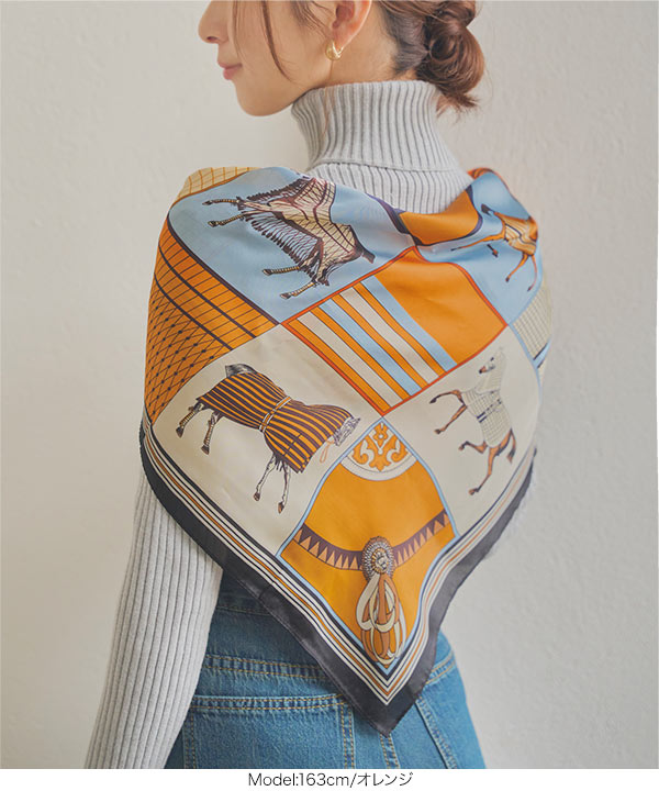 商品カテゴリ:[J1182]【入荷済】 70×70 アイボリー アクセサリー おしゃれ オレンジ お洒落 カラフル きれいめ スカーフ セレモニー トレンド バンダナ ブラウン ブラック ブルー ペイズリー ホワイト モノトーン 華やか 寒さ対策 巻く 幾何学 光沢 行事 黒 七五三 首巻き 上品 青 卒園式 卒業式 茶色 入園式 入学式 馬 白 白黒 冷房対策