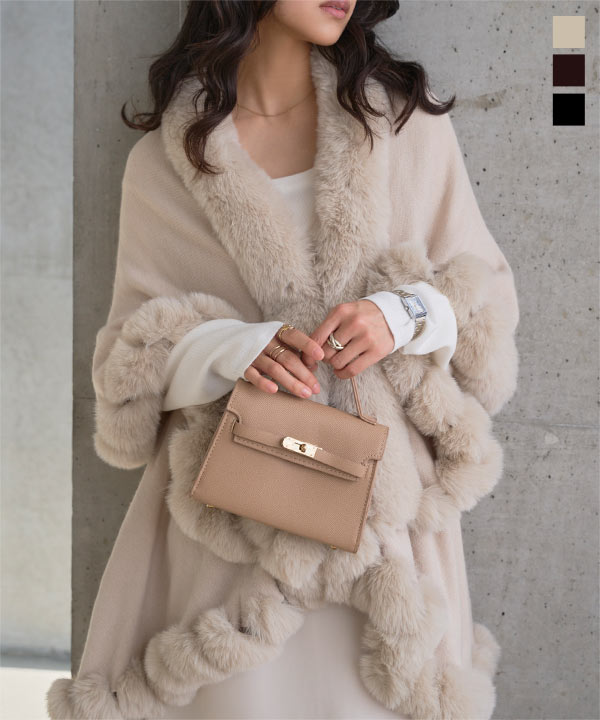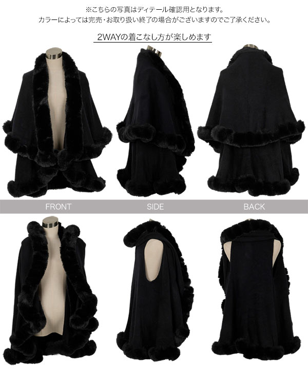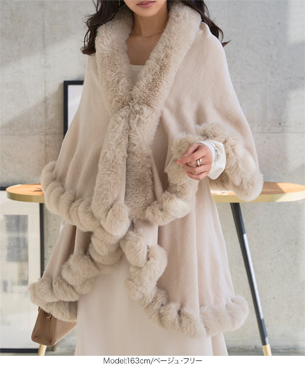 アウター レディース ケープコート 40代 50代 ファーポンチョ フェイクファー マントコート ジレ ベスト K1434