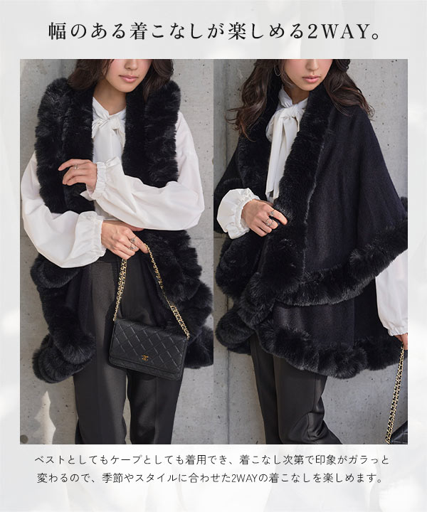 商品カテゴリ:20代 30代 40代 50代 アウター エクリュ エレガントコート オケージョン お出かけ きれいめ ケープコート ゴージャス ジレ シンプル すてき セレモニー ファー フェイクファー フェイクファーケープポンチョ ブラウン ブラック ベスト ポンチョコート ママ マントコート ミセス ライトベージュ ラグジュアリー レディース 羽織り 華やか 軽アウター 黒色 謝恩会 女性 上品 素敵 大人可愛い 茶色 通勤 冬 二次会 母 無地