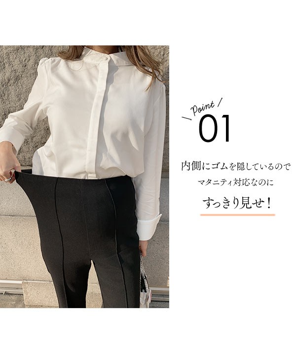 マタニティパンツ レディース ボトムス mamaレタス ストレッチ センターライン パンツ M2833